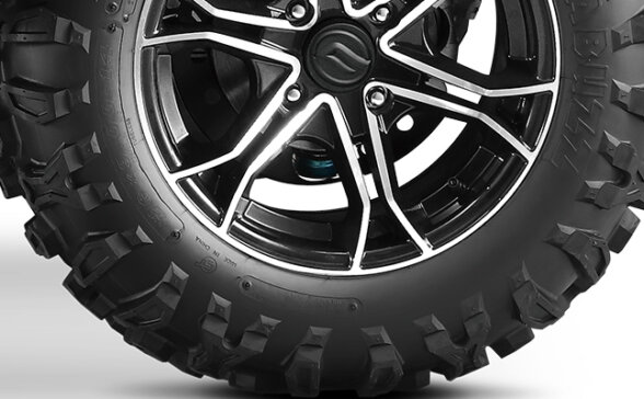 14-дюймові алюмінієві легковагі диски забезпечують відмінні ходові характеристики у різних умовах експлуатації та на різних типах місцевості, а також надають квадроциклу CFORCE 850XC агресивного й висококласного зовнішнього вигляду.